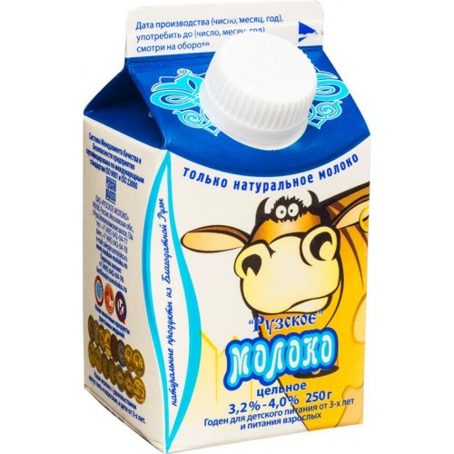 Молоко Рузское цельное пастеризованное 3.2-4%, 250мл в магазинах Перекресток