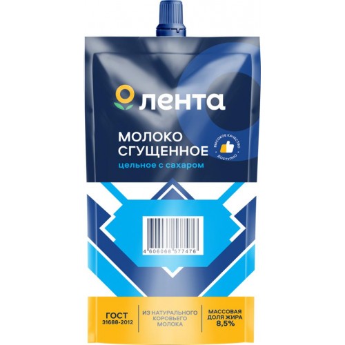 Молоко сгущенное ЛЕНТА с сахаром, 100г в магазинах Лента