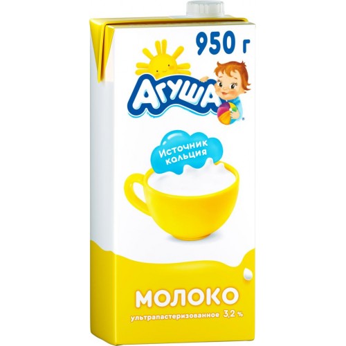 Молоко ультрапастеризованное для питания детей АГУША 3,2% старше 3-х лет, без змж, 950г в магазинах Лента
