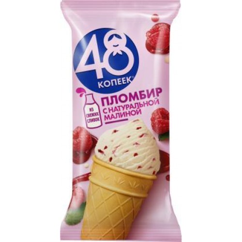 Мороженое 48 Копеек Пломбир с малиной в вафельном стаканчике 91г в магазинах Магнит