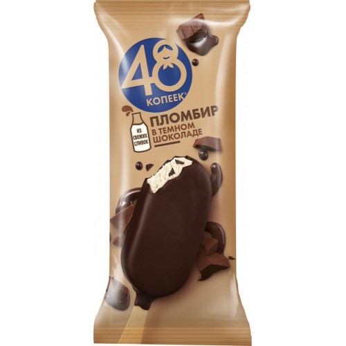 Мороженое 48 КОПЕЕК Пломбир в темном шоколаде без змж, эскимо, 90мл в магазинах Лента