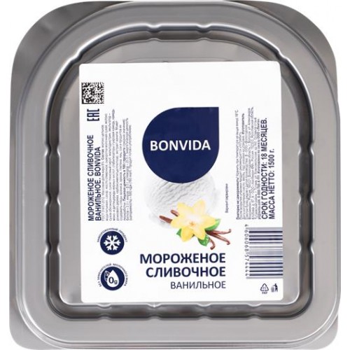 Мороженое BONVIDA Пломбир ванильный 8%, без змж, контейнер, 1,5кг в магазинах Лента