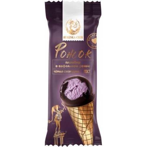 Название товара: Мороженое Burenka Club, пломбир с чёрной смородиной, в вафельном рожке, 70 г