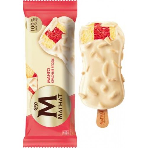 Мороженое Магнат Эскимо сливочное с Манго красные ягоды в белом шоколаде 74г в магазинах Магнит