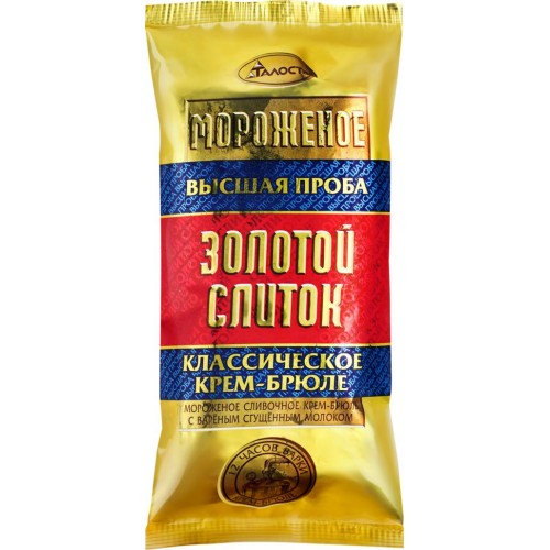 Мороженое ТАЛОСТО Золотой слиток Крем-брюле с вареным сгущенным молоком 8%, без змж, брикет, 200г в магазинах Лента