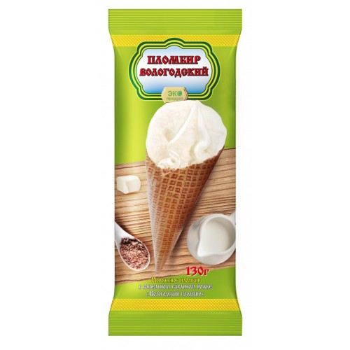 Мороженое ВОЛОГОДСКИЙ ПЛОМБИР Ванильный 15%, без змж, вафельный рожок, 130г в магазинах Лента