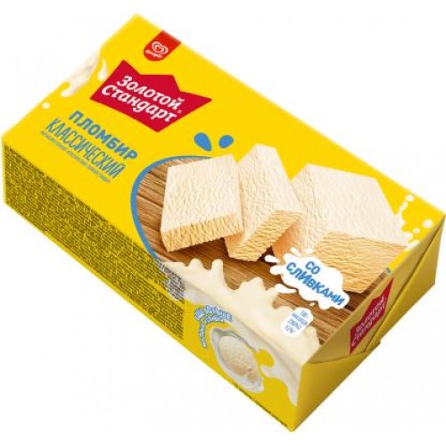 Мороженое Золотой Стандарт «Пломбир классический» в формате брикета (180 г) – это 100% натуральный продукт с насыщенным сливочным вкусом, идеальный для тех, кто предпочитает традиционное мороженое другим его видам.