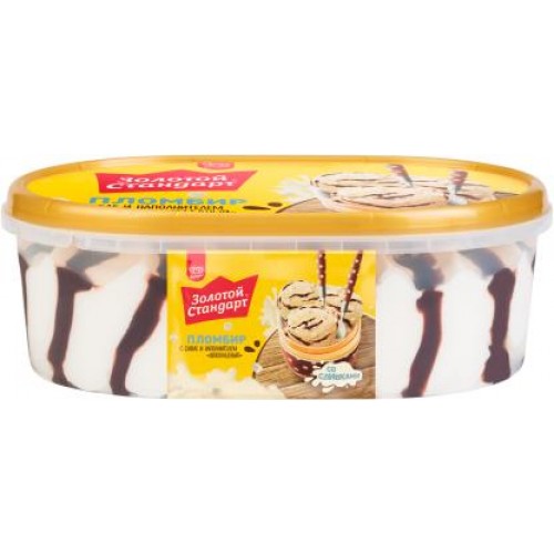 Мороженое Золотой стандарт Пломбир с суфле и шоколадным наполнителем 12% 475г в магазинах Магнит