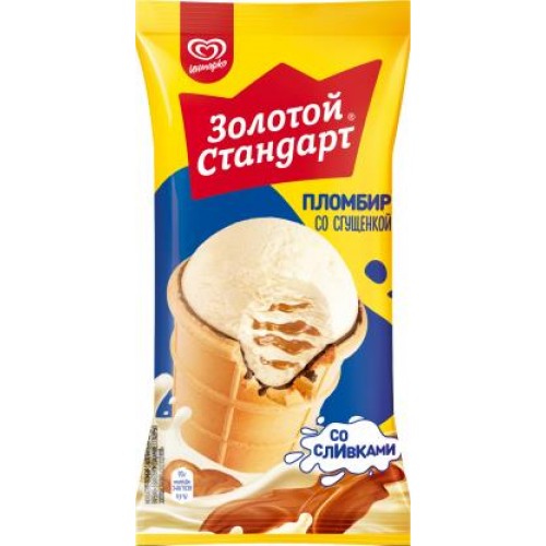 Золотой стандарт мороженое пломбир в вафельном стаканчике со сгущенкой 89 г – 100% натуральный продукт с насыщенным вкусом сливок, густой кремовой консистенцией и ярким послевкусием спелых ягод. В его состав входит вареная сгущенка, покрытая хрустящей глазурью и завернутая в вафельный стаканчик. Пломбир «Золотой Стандарт» прекрасно подходит для любителей традиционного вкуса и тех, кто ценит высокое качество продуктов и их натуральный состав. В нашем мороженом вы не найдете искусственных красителей, ароматизаторов или консервантов.