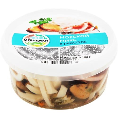 Морской микс МЕРИДИАН в рассоле, 180г в магазинах Лента