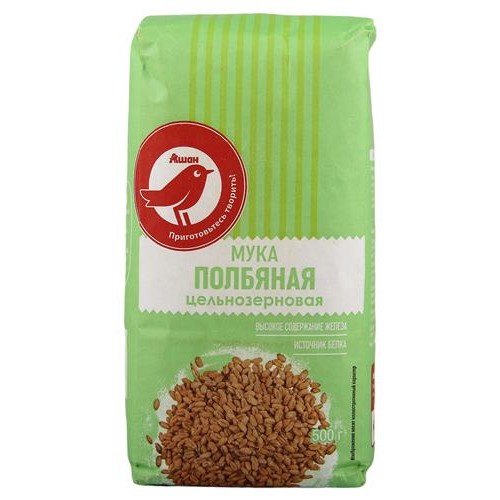 Мука полбяная АШАН Красная птица, 500 г (kastd) в магазинах Ашан
