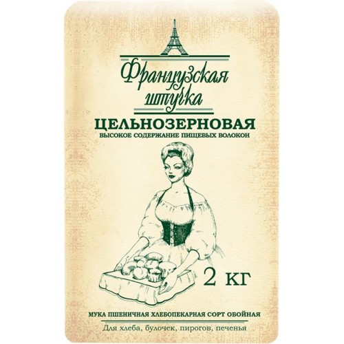 Мука пшеничная ФРАНЦУЗСКАЯ ШТУЧКА цельнозерновая хлебопекарная обойная ГОСТ, 2кг в магазинах Лента