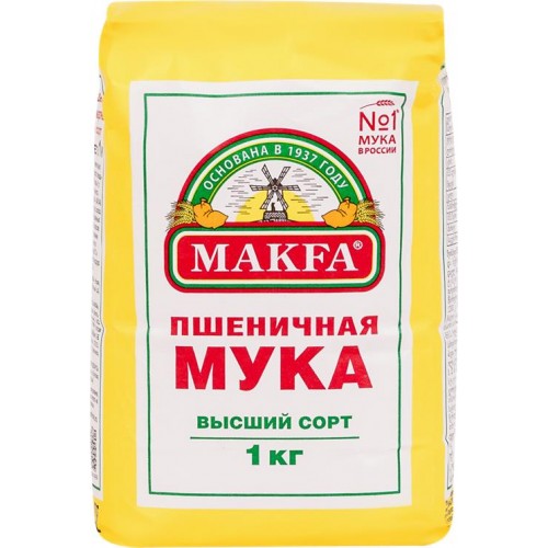 Мука пшеничная MAKFA хлебопекарная высший сорт, 1кг в магазинах Лента