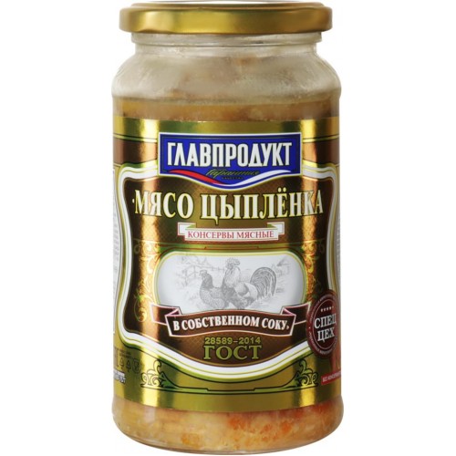 Мясо цыпленка ГЛАВПРОДУКТ в собственном соку ГОСТ, 425г в магазинах Лента
