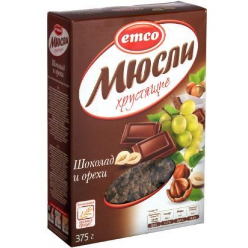 Мюсли Emco хрустящие с шоколадом и орехами 375г в магазинах Магнит