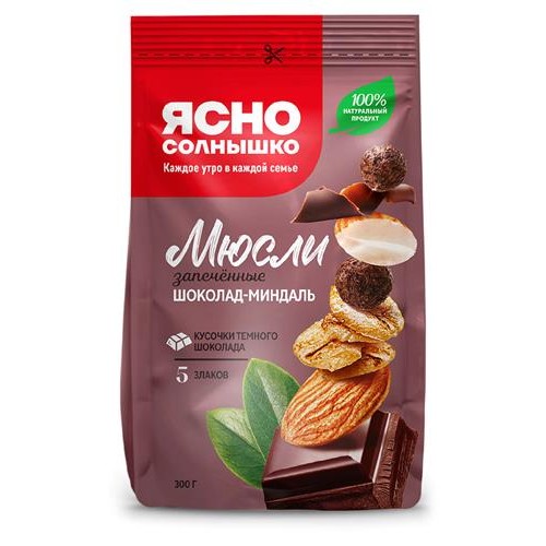 Мюсли Ясно солнышко шоколадно-миндальные запеченные, 300 г (kastd) в магазинах Ашан