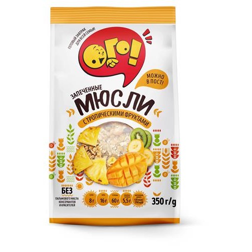 Мюсли запеченные ОГО! с тропическими фруктами, 350 г (kastd) в магазинах Ашан