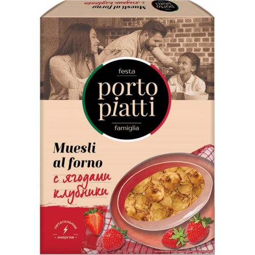 Мюсли запеченные PORTO PIATTI с ягодами клубники, 250г в магазинах Лента