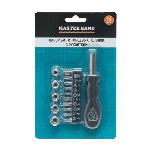 Набор бит и торцевых головок с рукояткой, Master Hand, 16 предметов в магазинах FixPrice