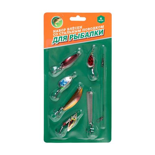 Набор блёсен со стальным поводком для рыбалки, 6 шт. в магазинах FixPrice