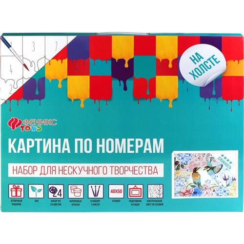 Набор для раскрашивания ФЕНИКС-ПРЕЗЕНТ Картины по номерам, 24 цвета, 40x50см, в ассортименте Арт. 88124, 88123, 88121 в магазинах Лента