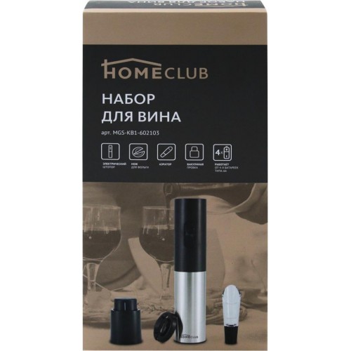 Набор для вина HOMECLUB электрический штопор, вакуумная пробка, аэратор Арт. MGS-KB1-602103 в магазинах Лента
