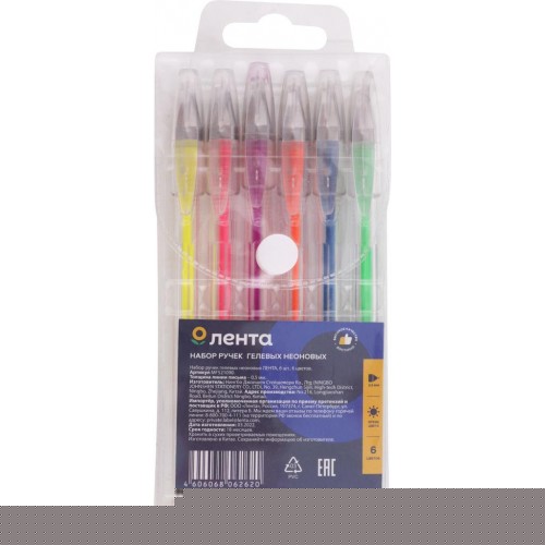 Набор гелевых ручек ЛЕНТА 6 цветов, неон, в ассортименте в магазинах Лента