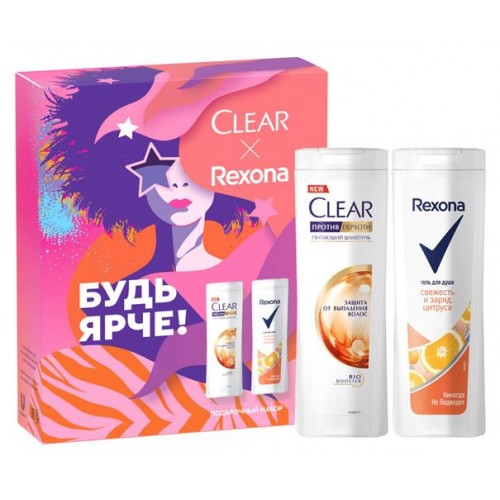 Набор подарочный женский Clear + Rexona, шампунь 200 мл + гель для душа 200 мл (kastd) в магазинах Ашан