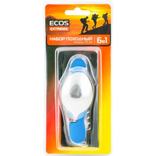 Набор походный ECOS 6в1 нож, открывалка для бутылок, нож консервный, вилка, ложка и штопор, Арт. 325134 в магазинах Лента