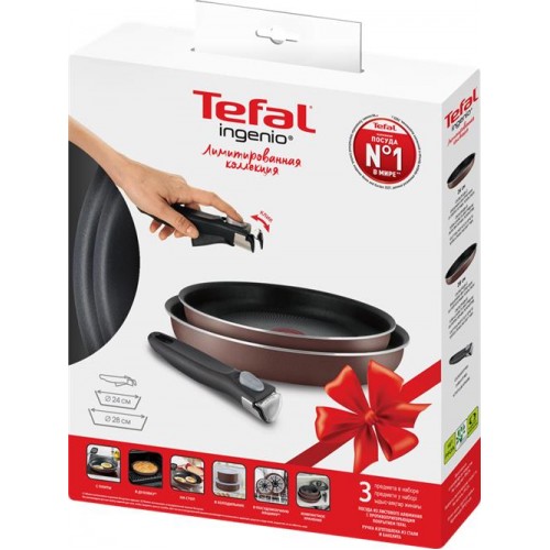 Набор посуды TEFAL Ingenio 3 предмета: сковороды 24см, сковороды 28см, съемная ручка в магазинах Лента