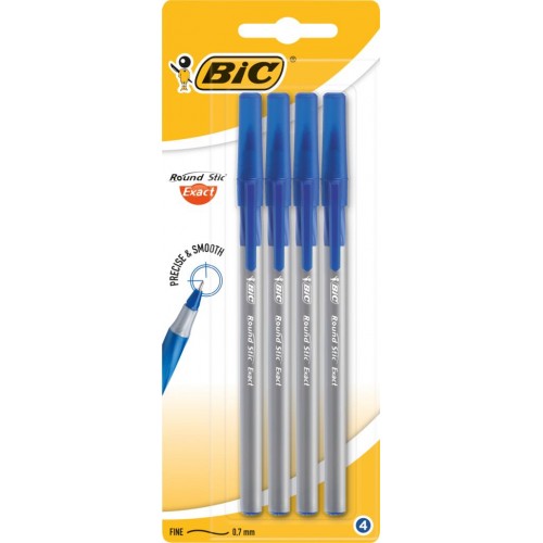Набор шариковых ручек BIC Round Stic Exact 0,7мм синий Арт. 932857, 4шт в магазинах Лента