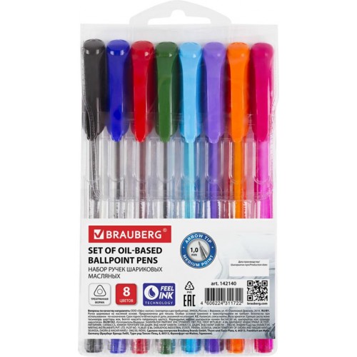 Набор включает 8 шариковых ручек с яркими цветами корпуса и современным дизайном, что привлечет внимание как школьников, так и взрослых.