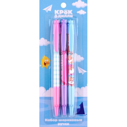 Набор шариковых ручек КРОК&ДИЛЛИ автоматические, синие, Арт. 640701, 3шт в магазинах Лента