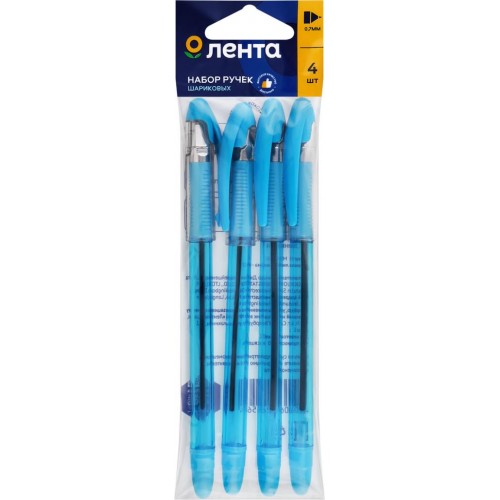 Набор шариковых ручек ЛЕНТА, синий, с мягкой манжетой, 4шт в магазинах Лента