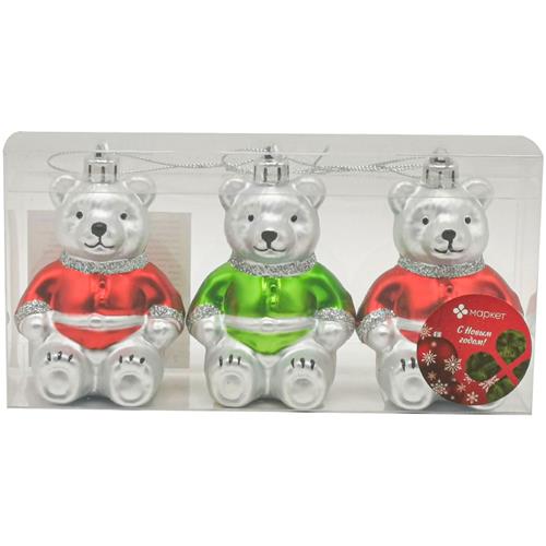 Набор ёлочных украшений Три медведя Маркет, 3шт в магазинах Перекресток