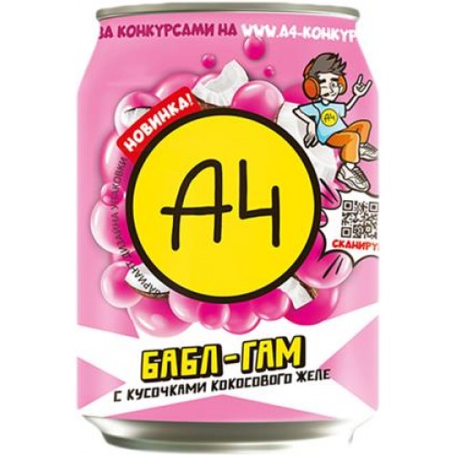 Напиток А4 Бабл гам с кусочками кокосового желе 240мл в магазинах Магнит