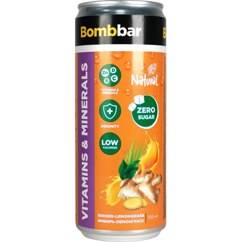 Напиток BOMBBAR Лимонад со вкусом имбиря и лемонграса, обогащенный магнием и цинком, газированный, 330мл в магазинах Лента