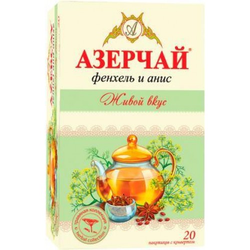 Напиток чайный «Азерчай Живой вкус Фенхель и Анис» в пакетиках по 20 штук - это ароматный и полезный травяной чай без чайных листьев, который благодаря сочетанию аниса и фенхеля обладает уникальным вкусом. В его букете раскрываются ноты мяты, сладости и легкой кислинки, делая напиток неповторимым.