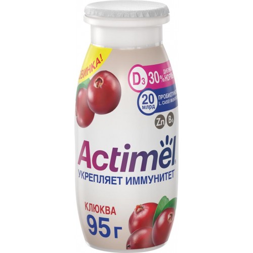 Напиток кисломолочный ACTIMEL Клюква с цинком, обогащенный 1,5%, без змж, 95г в магазинах Лента