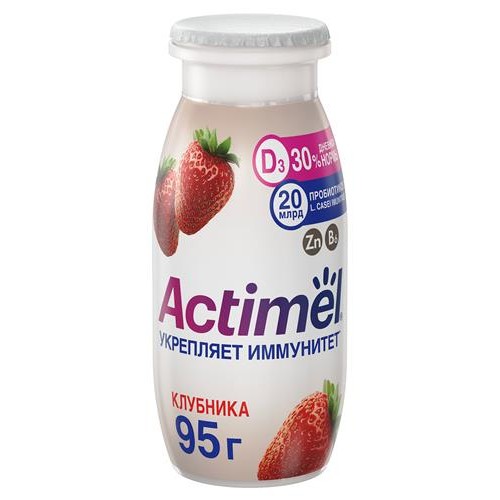 Напиток кисломолочный Actimel с клубникой 1,5% БЗМЖ, 95 г (kastd) в магазинах Ашан