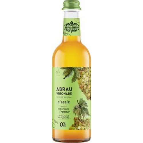 Напиток безалкогольный Vinonade Abrau Classic Traminer, 375 мл - это сильногазированный напиток, изготовленный на основе виноградного сусла с добавлением натурального ароматизатора «Траминер». Цвет напитка напоминает белое вино. Сорт винограда Траминер отличается легким мускатным ароматом с оттенками розы.