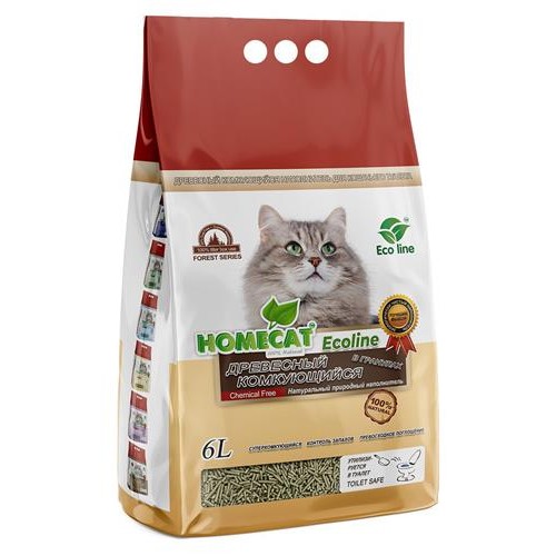 Наполнитель для кошачьего туалета HOMECAT Ecoline древесный комкующийся в гранулах, 6 л (kastd) в магазинах Ашан