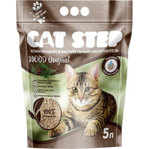 Наполнитель растительный для кошачьего туалета CAT STEP Wood Original комкующийся, 5л в магазинах Лента