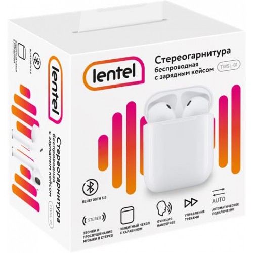 Наушники беспроводные LENTEL TWSL-01 с зарядным кейсом, белые Арт. 126834 в магазинах Лента