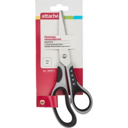 Ножницы Комус Attache анатомическими ручками чёрно-серые 19.5см в магазинах Магнит