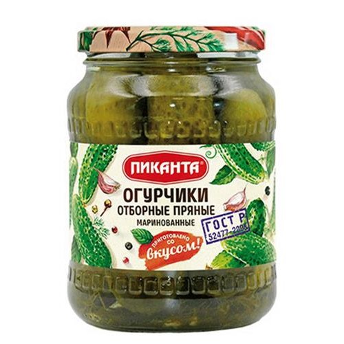 Огурчики Пиканта отборные пряные маринованные, 690 г (kastd) в магазинах Ашан