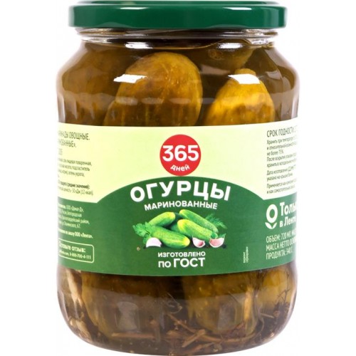 Огурцы маринованные 365 ДНЕЙ, 720мл в магазинах Лента