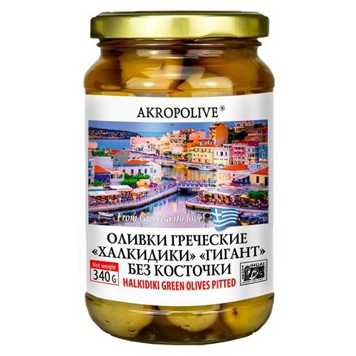 Оливки Akropolive Халкидики без косточки Гигант, 340 г (kastd) в магазинах Ашан