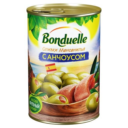 Оливки BONDUELLE Мансанилья с анчоусом, 300 г (kastd) в магазинах Ашан