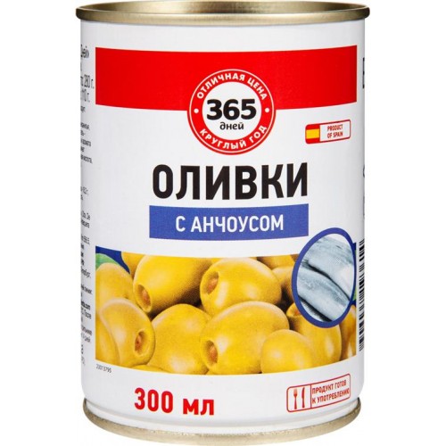 Оливки с анчоусом 365 ДНЕЙ зеленые, 300мл в магазинах Лента
